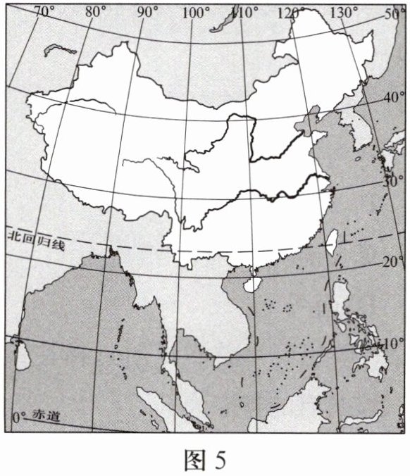 我国陆地领土面积约960万平方千米,主张管辖海域面积约300万平方千米,疆域辽阔。读中国疆域图(图5),完成6-7题。