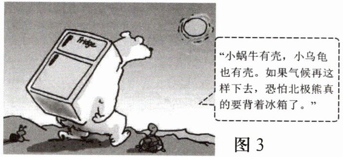 2.该漫画反映全球变暖带来的危害,节能减排,减少碳排放,能缓解全球变暖,C正确;修建沿海大堤,只能防止沿海低洼地区被淹,但不能缓解全球变暖,A错误;热带国家大力投入空调,寒带地区增加供暖设施,这些做法会增加碳排放,加剧全球变暖,B、D错误;故选C。