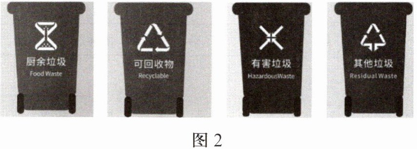 国家发展改革委、住房城乡建设部发布的《生活垃圾分类制度实施方案》目的是推动生活垃圾分类,完善城市管理和服务,创造优良人居环境。读生活垃圾分类图(图 2),完成 6 - 7 题。