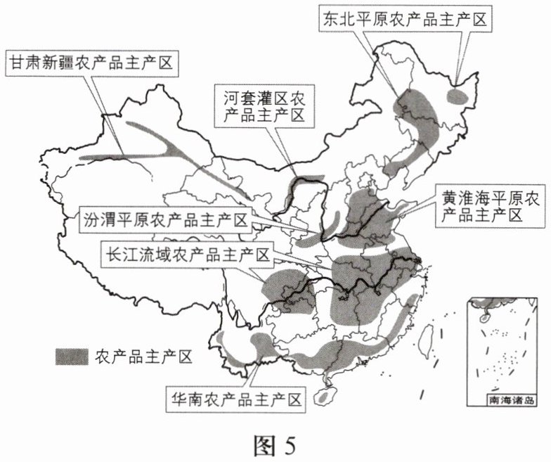 图5为中国农业“十二五”期间农产品主产区战略格局图,读图,完成3-4题。