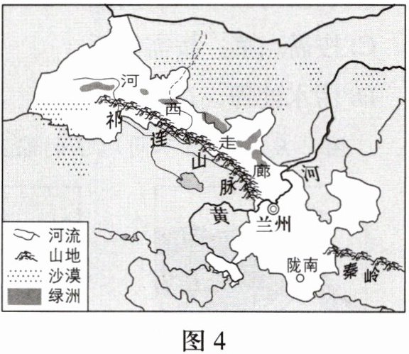 甘肃省河西走廊是我国最大的玉米制种基地,被称为“种子繁育黄金走廊”,每年玉米收获后,戈壁滩就成为天然晾晒场。同时,河西走廊也是喜温凉的娃娃菜、包菜等“高原夏菜”的重要种植区,每年夏季蔬菜大量销往东南沿海地区,缓解当地蔬菜供应紧张的问题。图4为甘肃省河西走廊示意图。据此完成1-2题。