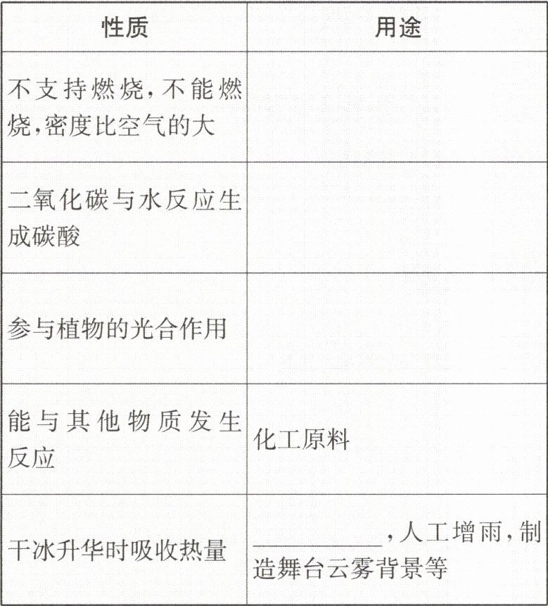 溶于水,通常状况下,1体积的水能溶解约1体积的$CO_2$。2. 二氧化碳能与水反应,化学方程式为