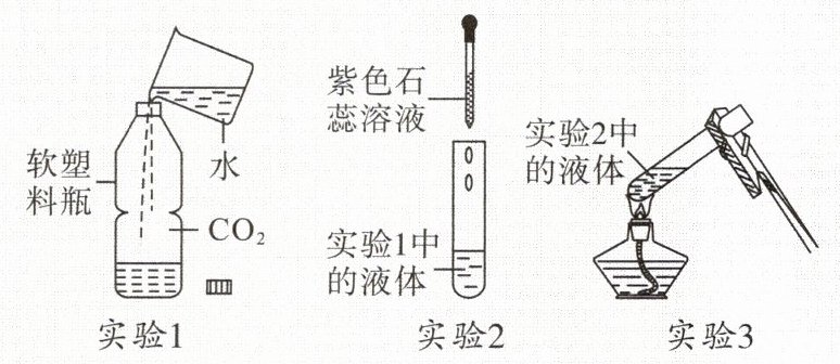 (1) 实验1:向盛有$CO_2$的软塑料瓶中倒入约$\frac{1}{3}$容积的水,迅速旋紧瓶盖后振荡。观察到的现象是
