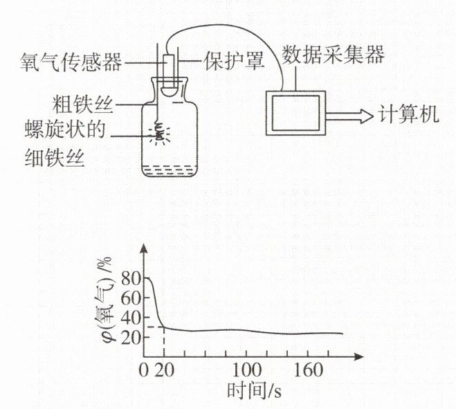 7. 下图为兴趣小组进行的关于“铁丝在氧气中燃烧”的实验,通过测量得到如图数据,关于该实验,下列说法正确的是(