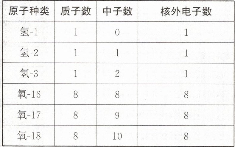 个中子。②表中的三种氢原子和氧-16原子最多可构成