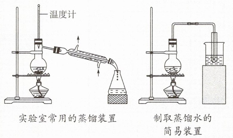 通过蒸馏自来水可以得到净化程度较高的蒸馏水,下面是比较常见的蒸馏装置。