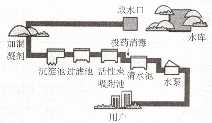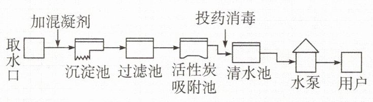 等处理,使之达到饮用水的标准,其净化过程如图所示。(1)取水口处的水常呈浑浊状,是因为水中含有许多