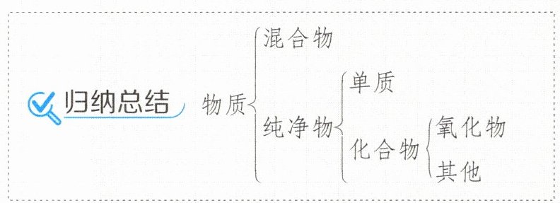 (2)提示 只含有一种元素的物质不一定是单质,还可能是混合物,例如氧气和臭氧混合在一起,虽然只含有一种元素,但由两种物质组成,是混合物。氧化物中一定含有氧元素,但含有氧元素的化合物不一定是氧化物,如高锰酸钾(KMnO₄)不是氧化物,因为它含有三种元素。