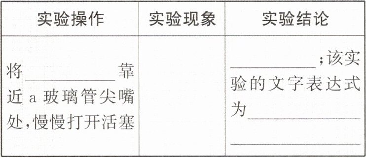 (2)小刚设计了下列实验方案,验证 a 玻璃管中气体的一条化学性质。