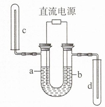 3. 用如图所示装置完成电解水的实验并收集产生的气体(U 形管中预先加入少量的氢氧化钠溶液,c、d 两支试管容积相等),下列说法不正确的是(