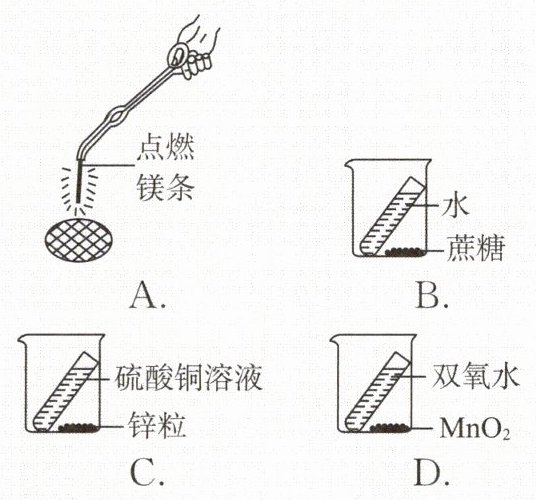 已知:锌与硫酸铜反应生成硫酸亚铁和铜。小明在实验室进行了如图所示的实验(B、C、D 是将试管和烧杯中的试剂混合),其中能验证质量守恒定律的是(
