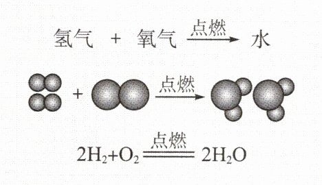 1. 下列三种方式都可以表示氢气在氧气中燃烧的反应。你认为哪种方式更能简捷、准确地记录和描述这一反应?说明理由。