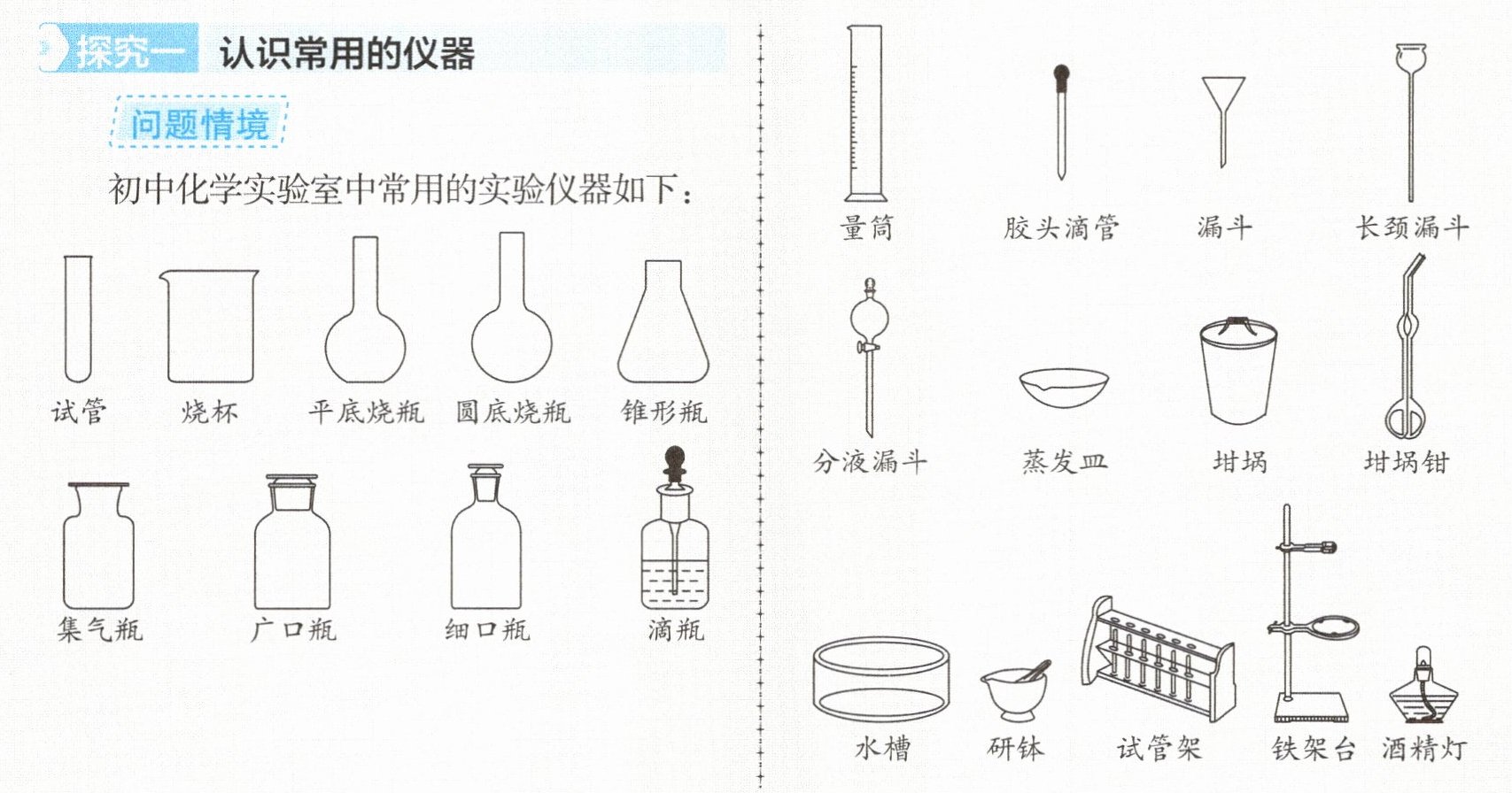 观察实验台上的仪器,说出下列仪器的用途及使用注意事项。