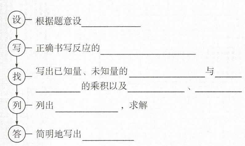 4.未知量 化学方程式 化学计量数 相对分子质量或相对原子质量 已知量 未知量 比例式 答案