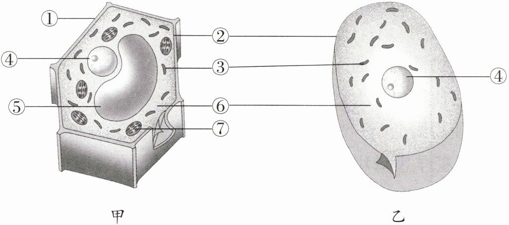,甲细胞中特有的结构是 [ ]⑦ 叶绿体