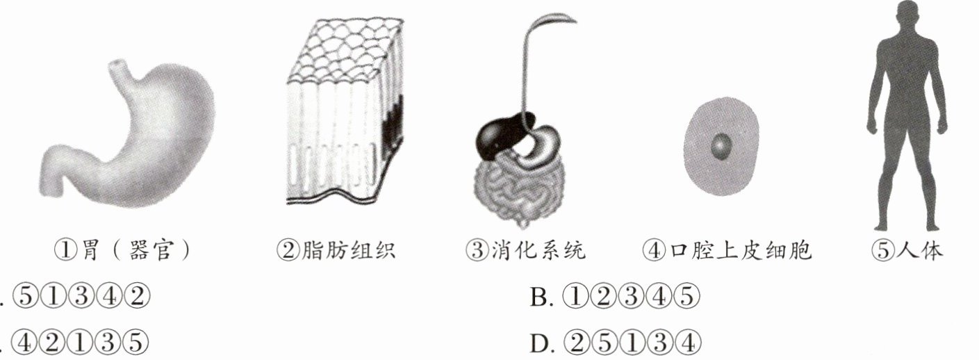 8. 下列各图分别代表人体的不同结构层次,按照由微观到宏观排序,正确的是(