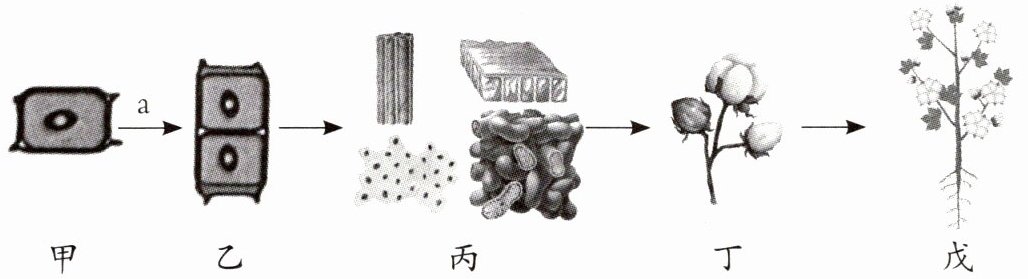 6. 邯郸成安的主要经济作物是棉花,其棉绒长,品质好,产量高。下图为成安棉的结构层次示意图,下列叙述错误的是(