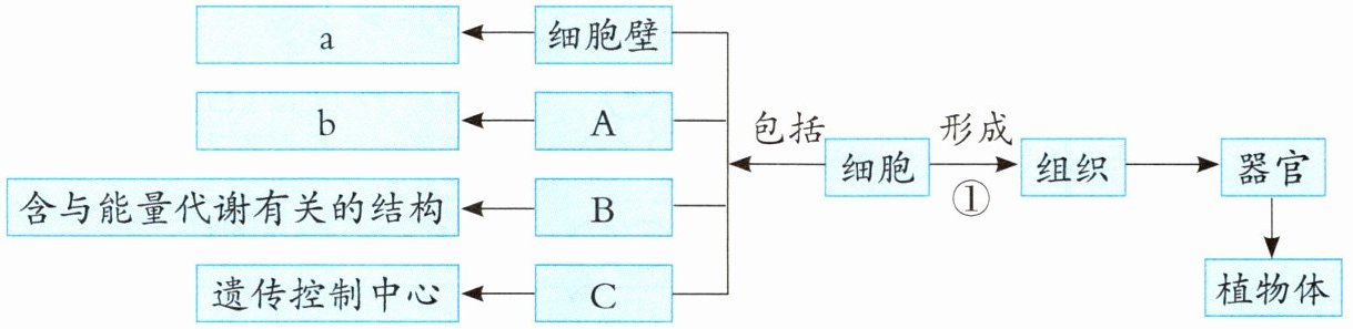 8. 下图是梧桐叶肉细胞的相关概念图,其中A、B、C表示结构,a、b表示功能,①表示生理过程。下列分析错误的是 (