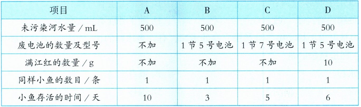 废旧电池丢弃到自然界后,其内含的汞、铅等有害物质容易污染土壤,或经雨水冲刷进入水体造成水质污染。满江红为常见的水生蕨类植物,在美化水体、净化水质、维持河道生态平衡等方面有显著功效。