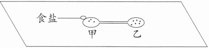 10. 在载玻片上滴甲、乙两滴草履虫培养液,用解剖针连通两滴培养液,在甲的左侧放少许食盐(如下图所示),一段时间后,发现草履虫从甲转移到乙中。这一实验说明生物能(