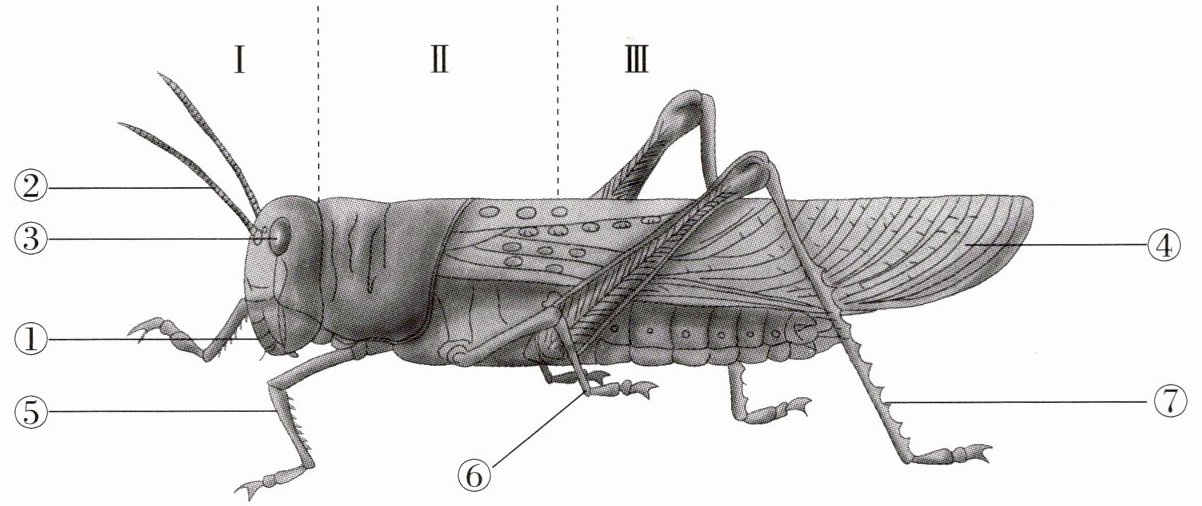 部三部分。(2)蝗虫的运动器官都着生在