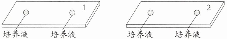 5. 为探究某物质对草履虫的刺激是有利的还是有害的,某同学在1号、2号载玻片上分别滴上两滴相同的草履虫培养液(如下图所示),用滴管分别在两片载玻片的两滴液滴之间轻轻地划一下,使用放大镜观察培养液中的草履虫。
