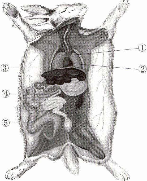 (2)家兔的胸腔里具有的结构是[ ]