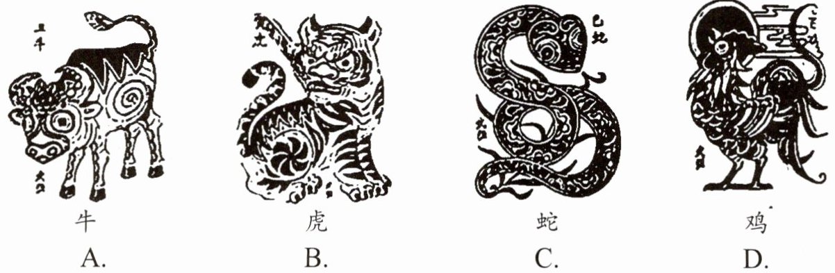 4. (2024·河北) 河北武强木版年画是国家级非物质文化遗产。下列年画作品表示的四种动物中,体温不恒定的是 (