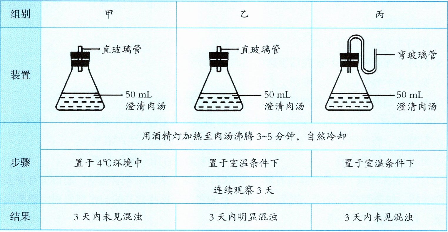 。(2)乙、丙两组实验结果表明,导致肉汤腐败的细菌和真菌主要来自