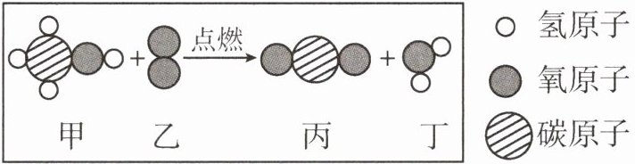 1.C 解析 A项,根据反应的微观示意图分析,甲醇与氧气在点燃的条件下反应生成二氧化碳和水,该反应的化学方程式为2CH₃OH + 3O₂ 点燃 2CO₂ + 4H₂O,正确。B项,根据化学方程式可知,丙为二氧化碳,丁为水,丙和丁的质量比为2×44:4×18 = 11:9,正确。C项,根据质量守恒定律,反应前后原子种类和数目都不变,分子种类改变,错误。D项,甲(甲醇)、乙(氧气)、丙(二氧化碳)、丁(水)四种物质都是由分子构成的,正确。