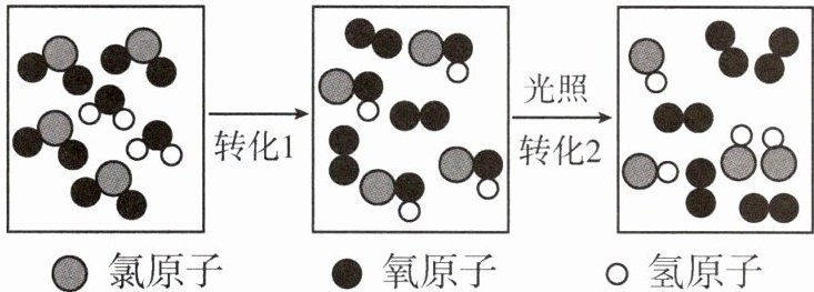 B.转化2的化学方程式为$HClO \xlongequal{光照} HCl + O_2 \uparrow$