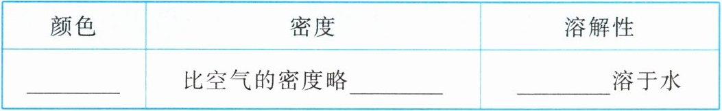 $氧气\xrightarrow[101\ kPa]{-183.0\ ^{\circ}C}淡蓝色液体\xrightarrow[101\ kPa]{-218.8\ ^{\circ}C}淡蓝色固体$