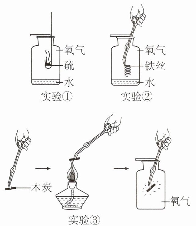 9. 硫、铁丝、木炭在氧气中燃烧的实验装置如图所示。