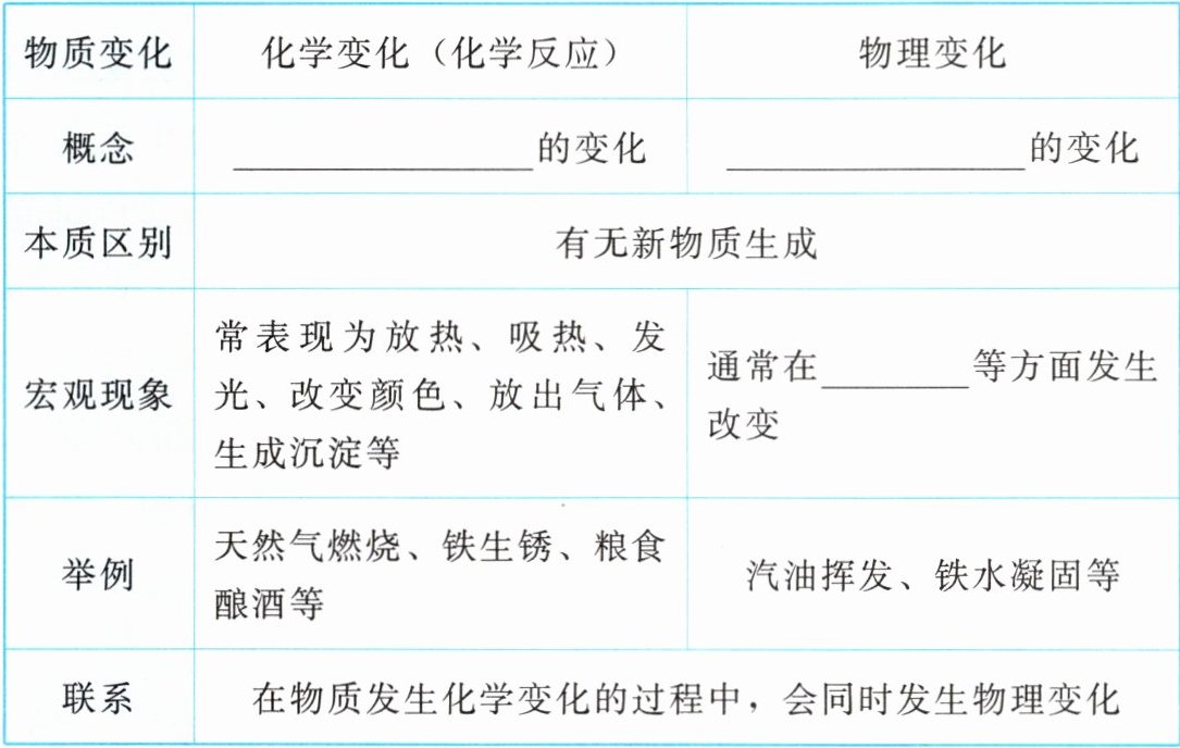 化学变化和物理变化的区别与联系如下表所示: