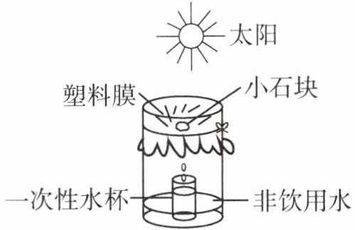 8. 某同学利用蒸馏的原理设计了野外饮用水简易净化装置(如图所示),对非饮用水经阳光暴晒后进行净化。下列说法正确的是 (