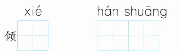 蜿蜒伸向远山。远山的轮廓在夕阳下显得有些倾 xié,好似一幅水墨画。不远处,一只松鼠正坐在树洞旁挑拣松果,准备过冬。暮色四合,hán shuāng 悄然落下,给大地蒙上了一层薄纱。1. 用“√”画出加点字的正确读音。