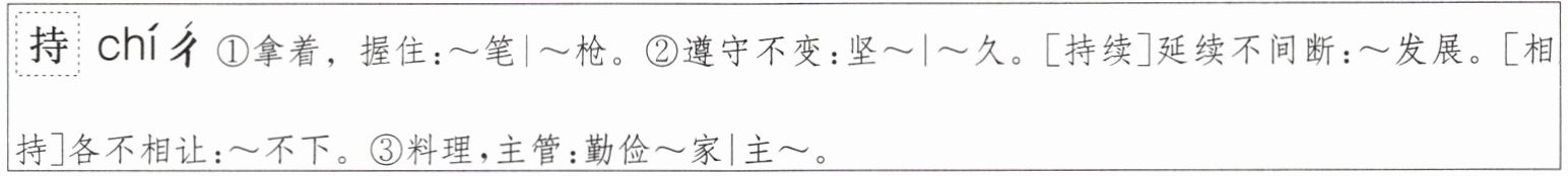 2. 下面是“持”在字典中的解释。“持之以恒”中,“持”的意思是(