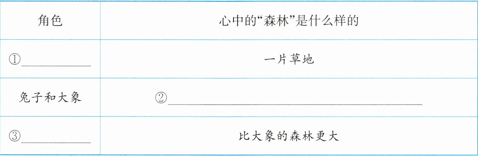 巨人说:“再见,小小的大象,我要到我自己的森林里去了。”对呀,巨人一定有着更大的森林。