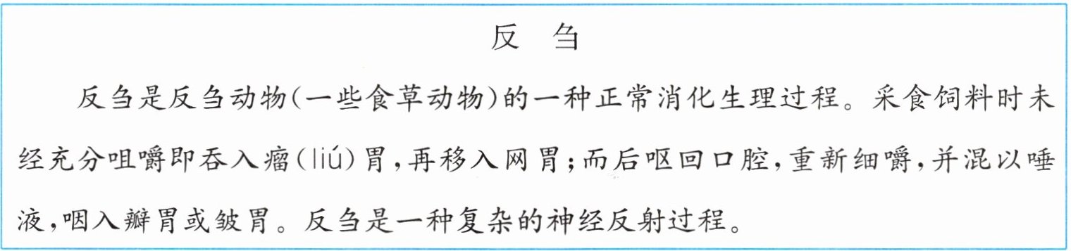 三、你知道动物的“反刍”吗?读读下面的资料,完成练习。(填序号)