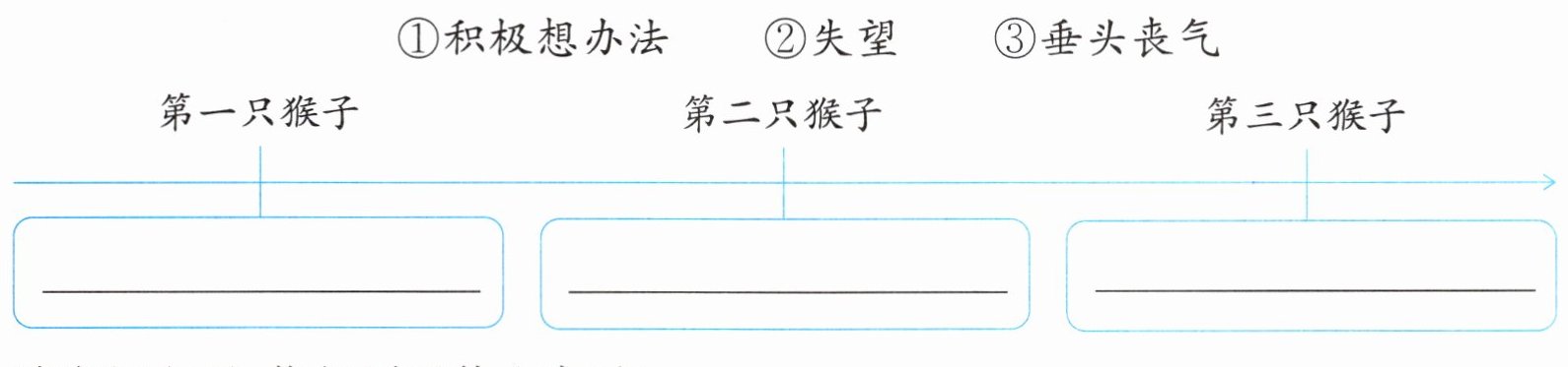 )种意思。(填序号)3. 这三只猴子开始看到门关着时,各有什么表现?(填序号)