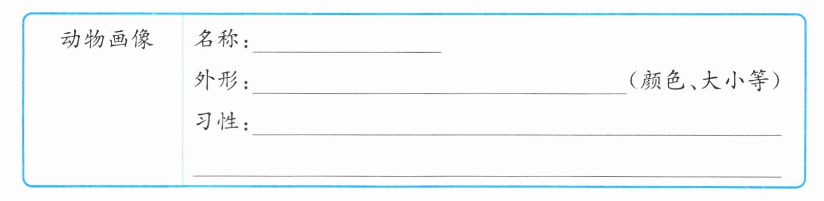 四、我们从课文中认识了翠鸟。请你通过观察或查阅资料等方式,了解一种动物,给它做一张名片吧。