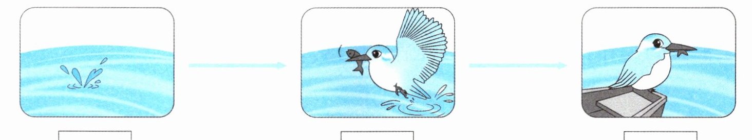 3. 语段二描写了翠鸟捕鱼时的情景。根据下面的图片,在方框内填写翠鸟相应的活动。(填序号)