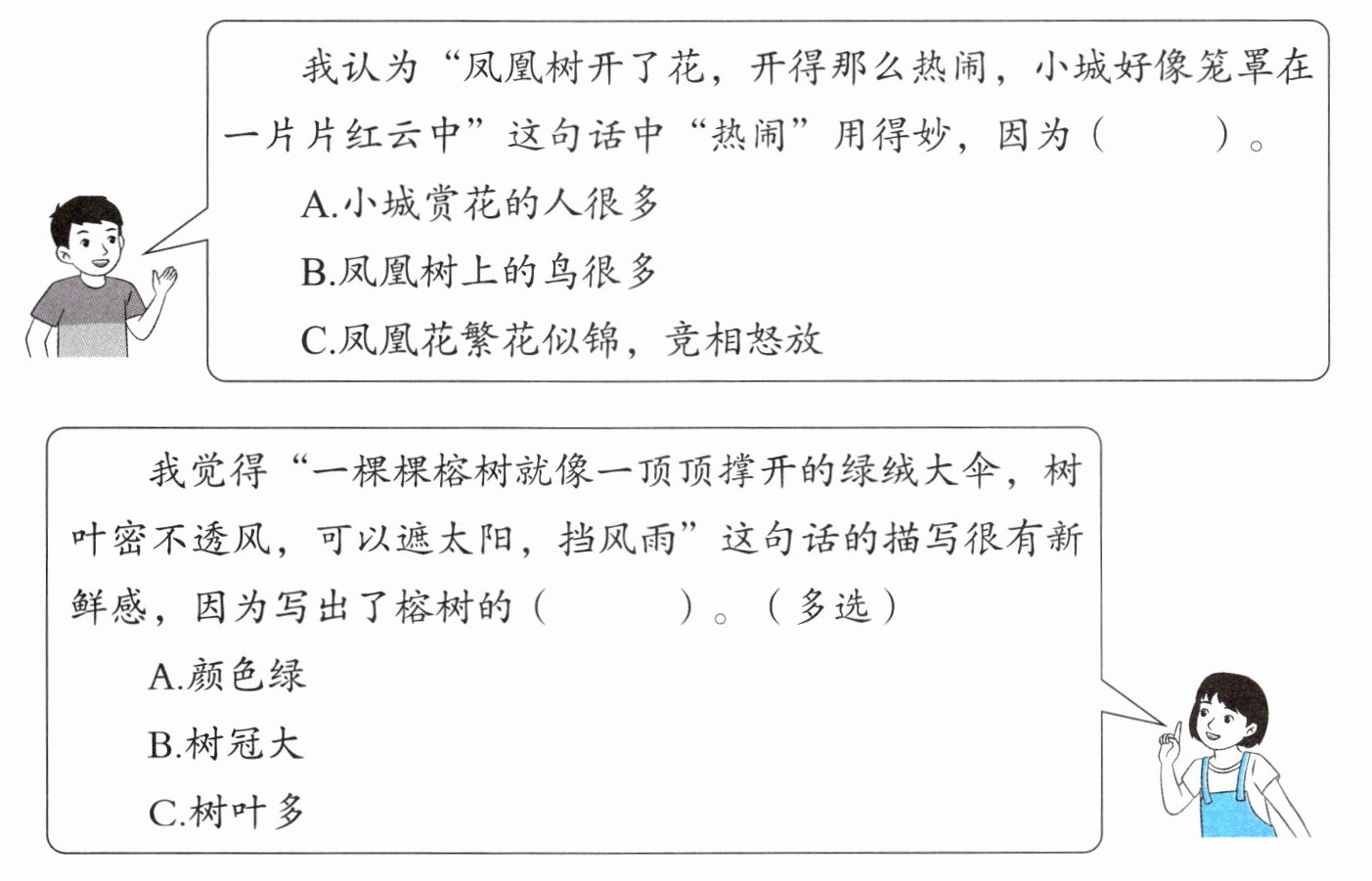 二、根据课文内容,填写表示颜色的词语。(填序号)