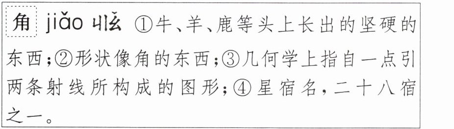 2. 乐乐发现语段最后一句中的“角”是一个多音字,请根据“角”在字典中的解释完成练习。