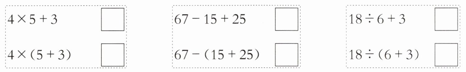 4. 在算式中补充运算符号或括号,使算式的运算顺序符合要求。