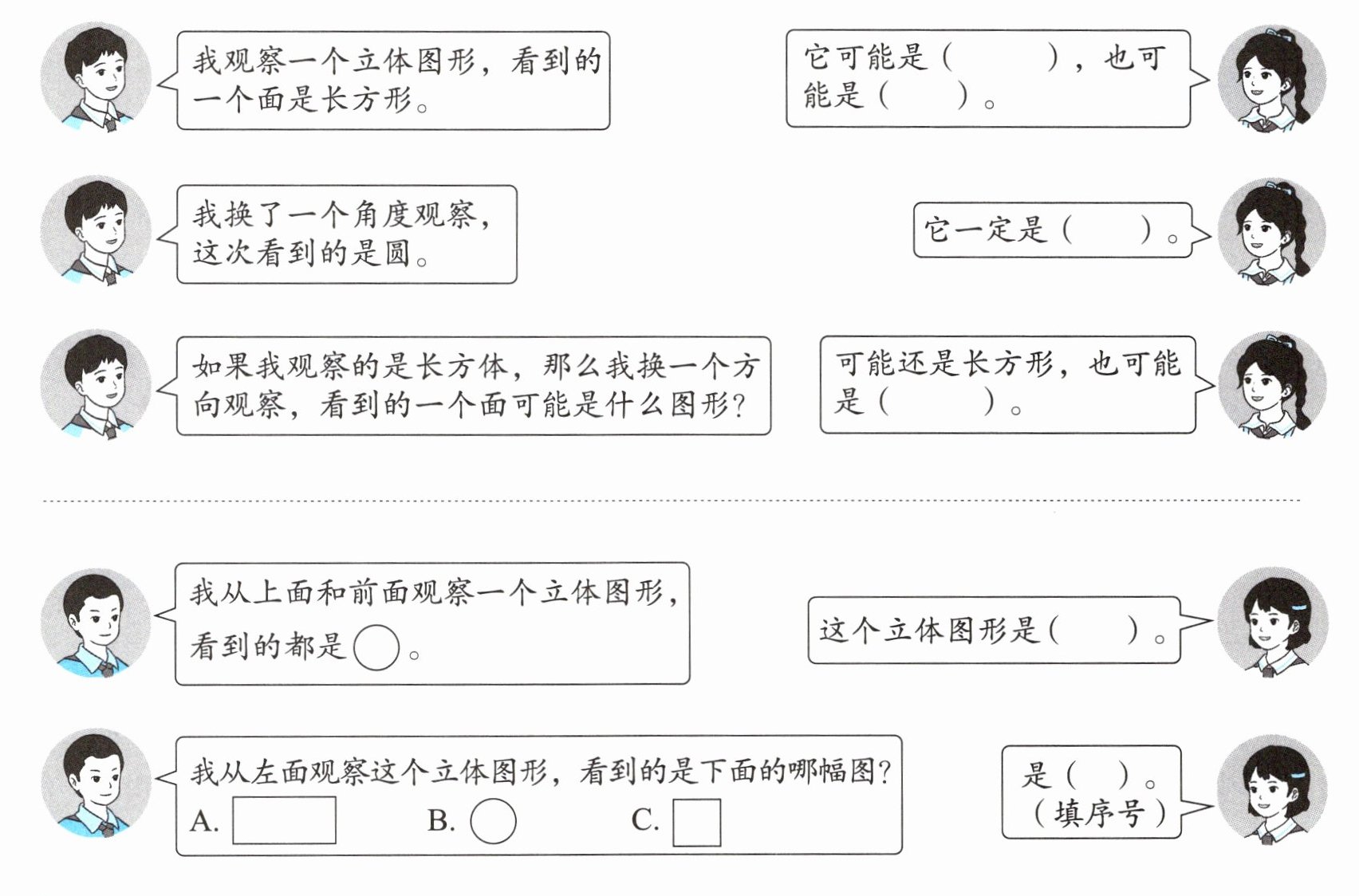 5. 下面是 4 名同学从不同位置观察一座房子看到的图形。