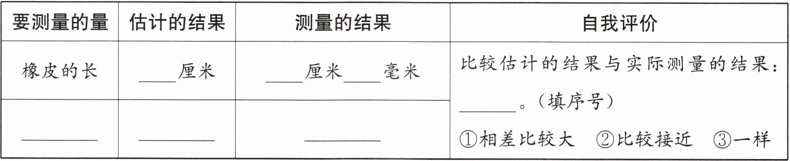 | 橡皮的长 | 3厘米 | 3厘米1毫米 | ② |