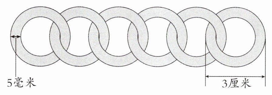 6. 有一些大小相同的铁环连在一起,拉紧后如下图。这 6 个铁环连在一起有多长?
