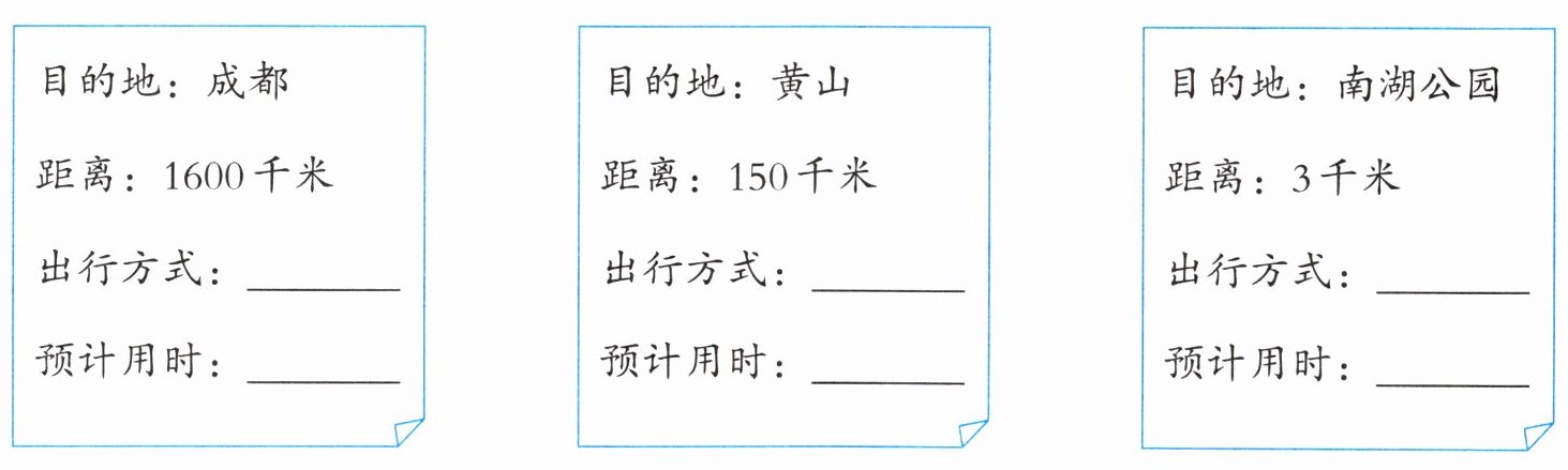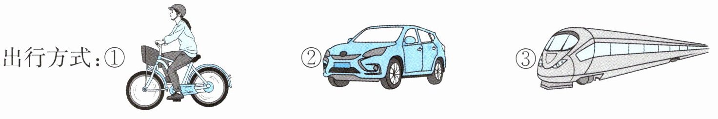 3. 选择合适的出行方式,补全出行计划。(填序号,每个序号只填一次)