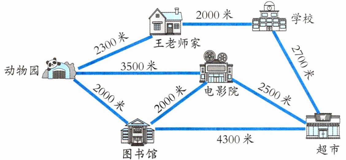 (2)从动物园先到电影院,再到超市。